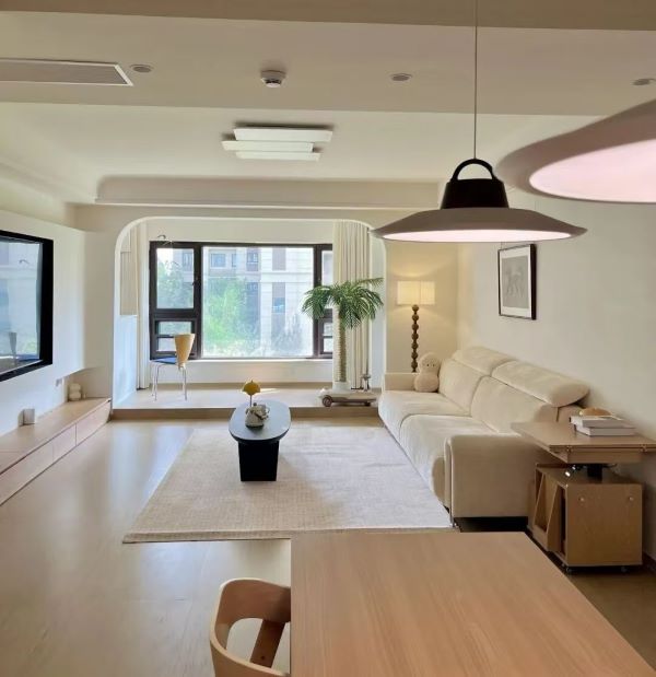 沙发背景墙也没啥造型,会偶尔换画,创造新鲜感。邻居都说客厅看起来更大些。