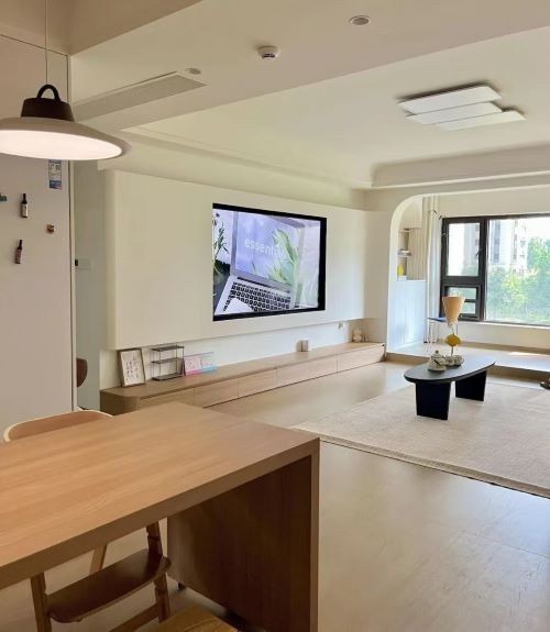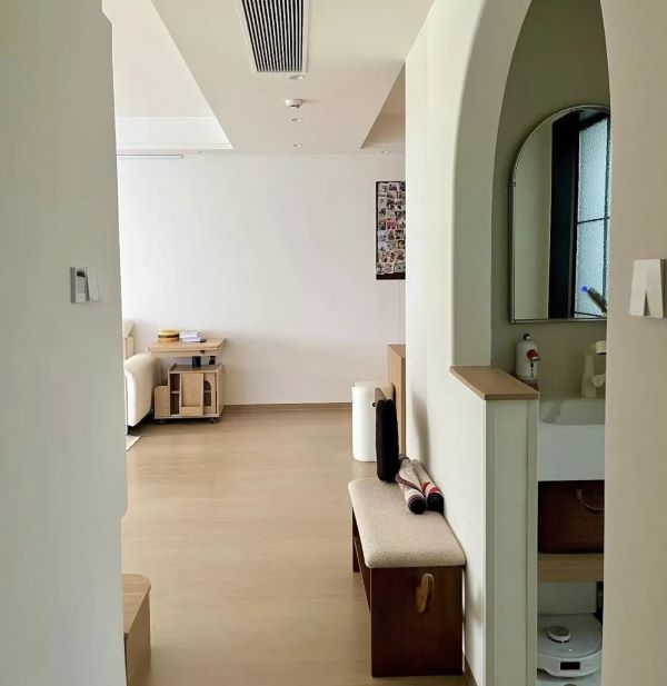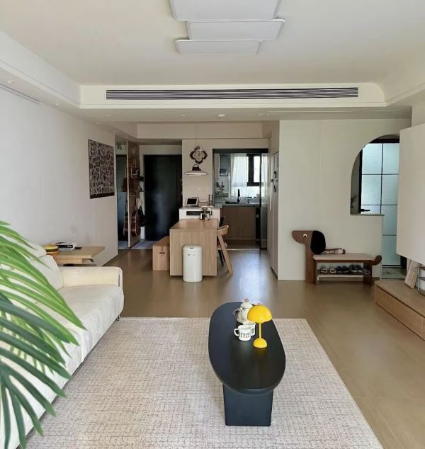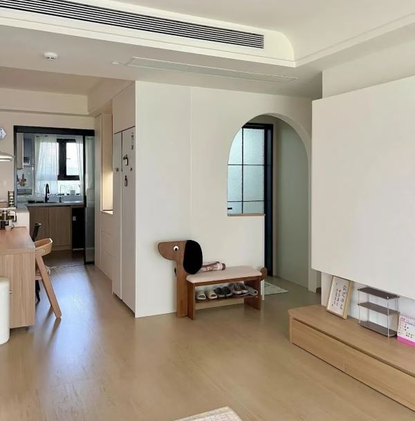 装修很简单,没有复杂的造型,也没有太多拆改。但是较多的做了定制,全屋木色竖直纹更统一,显得整体大气协调。